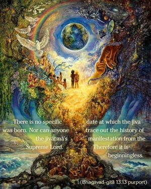 The Lord has explained the field of activities and the knower of the field. He has also explained the process of knowing the knower of the field of activities. Now He begins to explain the knowable, first the soul and then the Supersoul. By knowledge of the knower, both the soul and the Supersoul, one can relish the nectar of life. As explained in the Second Chapter, the living entity is eternal. This is also confirmed here. There is no specific date at which the jīva was born. Nor can anyone trace out the history of the jīvātmā’s manifestation from the Supreme Lord. Therefore it is beginningless. The Vedic literature confirms this: na jāyate mriyate vā vipaścit (Kaṭha Upaniṣad 1.2.18). The knower of the body is never born and never dies, and he is full of knowledge.