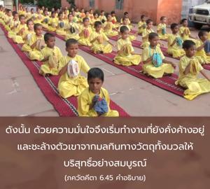 “หลังจากหลายต่อหลายชาติในการสะสมบุญ เมื่อเป็นอิสระอย่างสมบูรณ์จากมลทินทั้งปวงจากความหลงกับสิ่งคู่ทั้งหลาย เขาจะมาปฏิบัติในการรับใช้ทิพย์ด้วยความรักต่อองค์ภควานฺ”
