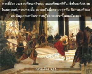 พวกที่สับสนจะชอบทัศนะคติของมารและทัศนะคติที่ไม่เชื่อในองค์ภควานฺในสภาวะแห่งความหลงนั้น ความหวังเพื่อความหลุดพ้น กิจกรรมเพื่อผลทางวัตถุ และการพัฒนาความรู้ของพวกเขาทั้งหมดล้มเหลว