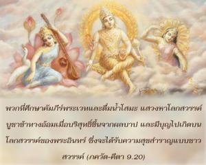 พวกที่ศึกษาคัมภีร์พระเวทและดื่มน้ำ โสม แสวงหาโลกสวรรค์ บูชาข้าทางอ้อมเมื่อบริสุทธิ์ขึ้นจากผลบาป และมีบุญไปเกิดบนโลกสวรรค์ของพระอินทร์ซึ่งจะได้รับความสุขสำราญแบบชาวสวรรค์